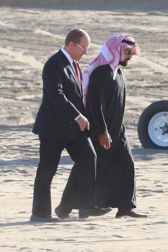 Oldukça kilo alarak Dick Cheney’e benzeyen 43 yaşındaki oyuncu, Ortadoğulu bir işadamını canlandıran rol arkadaşı ile yürürken kameraya yansıdı.