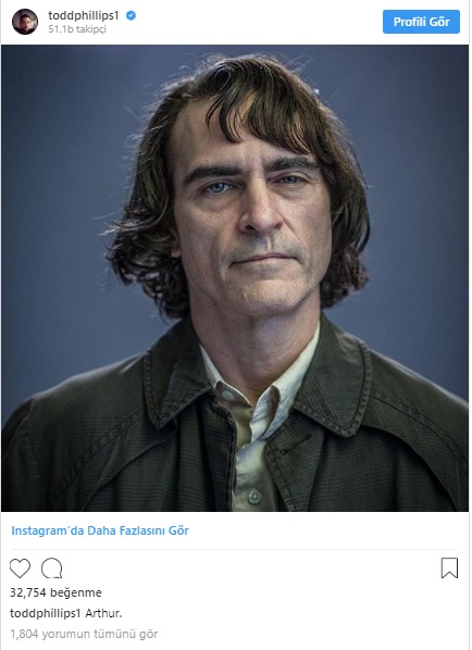Joaquin Phoenix'in başrolünde olduğu Joker filminin yönetmeni Todd Phillips, ilk kareyi "Arthur" yorumu ile Instagram'dan paylaştı.