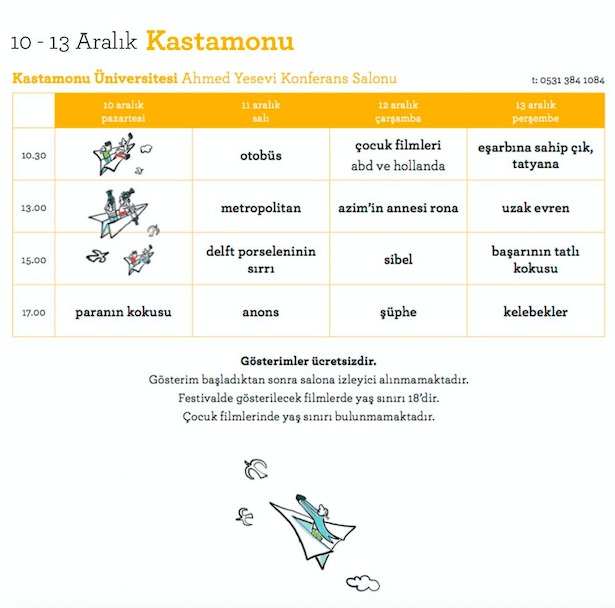 10-13 Aralık tarihleri arasında Kastamonu Üniversitesi Medya ve İletişim Topluluğu katkılarıyla Ahmed Yesevi Konferans Salonu'nda gerçekleştirilecek 24. Gezici Festival'de tüm gösterimler ücretsiz olacak. Ayrıntılı programı için >> http://bit.ly/GF2018Kastamonu