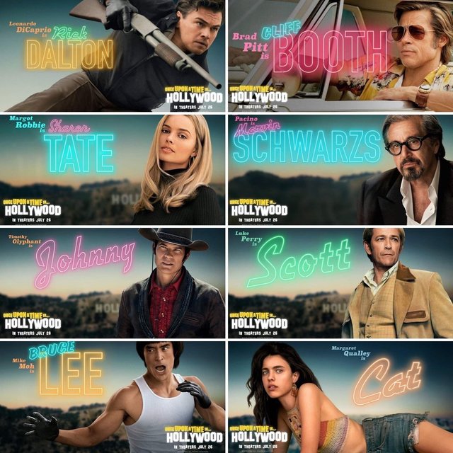 Vizyona girmesine sayılı günler kala, Quentin Tarantino’nun merakla beklenen filmi Once Upon a Time in Hollywood’tan karakterler için özel olarak yapılmış yeni bir poster serisi geldi.