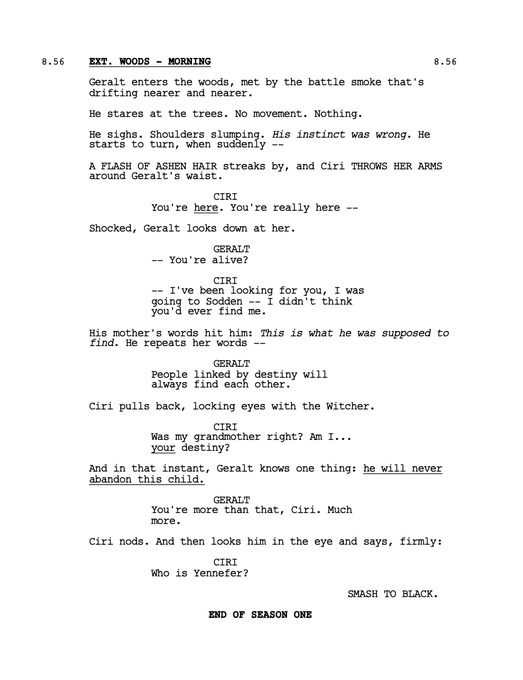 Yayınlanan ilk sezonun sonunda Henry Cavill’in hayat verdiği Geralt’ı en son Sodden’ın dışında bulunan ormanda annesinin kehanetini arar halde görmüştük. Aslında Geralt’ın Ciri’yi görmesiyle annesinin kehaneti ile Ciri’yi bağdaştırdığı ve “kaderlerinin kesiştiğini” anladığı sezon finali sahnesi, akla gelen ilk final değilmiş. Twitterda yayınlanan bir fotoğrafla açığa çıkan bu gerçeği şimdi sizlerle de paylaşıyoruz…