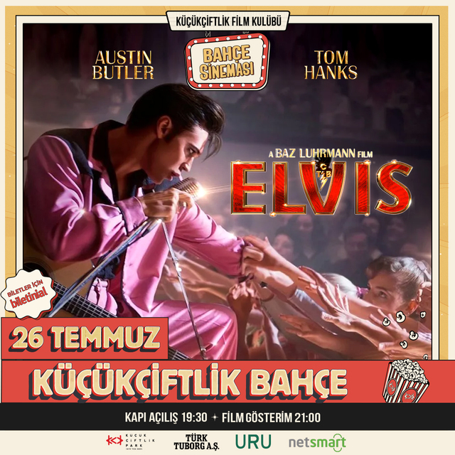 KüçükÇiftlik Film Kulübü Sunar: Bahçe Sineması’nın gösterimleri 26 Temmuz Salı akşamı Austin Butler ve Oscar ödüllü Tom Hanks’in başrollerini paylaştığı, Oscar adayı film yapımcısı Baz Luhrmann imzalı Elvis Presley’in hayatını ve müziğini araştırarak konu alan, epik bir sinema gösterisi olarak karşımıza çıkan “Elvis” filmiyle başlayacak.