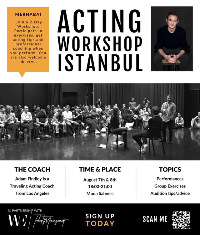 Ünlü Hollywood yıldızı Adam Findley, oyuncu koçluğunu birçok ülkede başarıyla gerçekleştirdikten sonra, WE Talent Management menajerlik şirketi iş birliğiyle İstanbul'a ziyaret gerçekleştirecek!